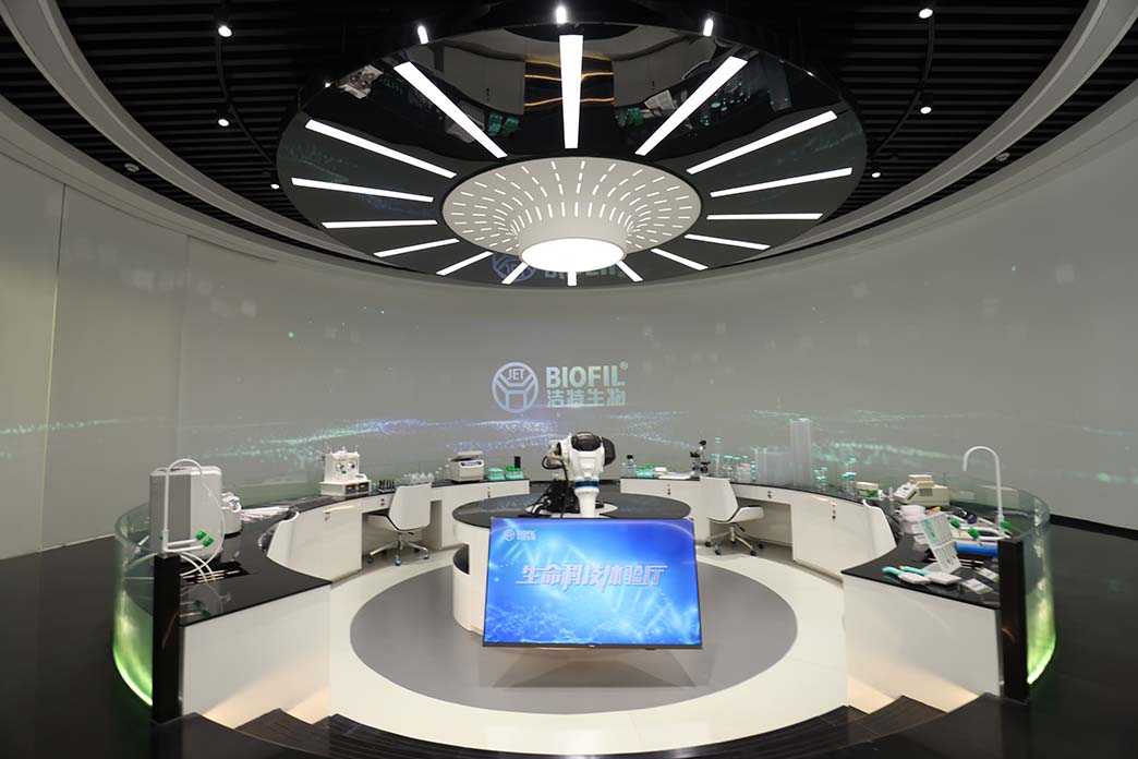 除此之外,潔特生物企業(yè)展廳特設(shè)沉浸式生命科學(xué)體驗(yàn)廳,通過模擬實(shí)驗(yàn)室場(chǎng)景,生動(dòng)地展示了潔特生物產(chǎn)品的關(guān)鍵用途,讓參觀來賓零距離地體驗(yàn)“小瓶罐也有大用處”。