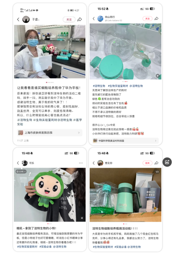 在小紅書關注“潔特生物”官方賬號;發(fā)布筆記分享您的中獎心得,帶話題 #生物實驗室耗材 #實驗必備 并@潔特生物。