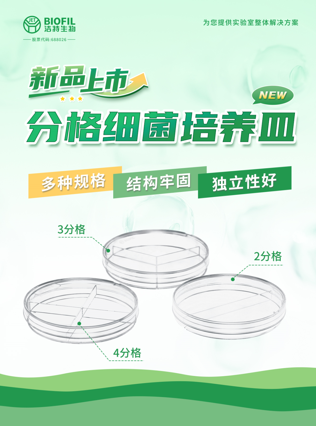 潔特生物分格細菌培養皿上新啦!