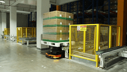 在立庫巨大的鋼貨架之間,有8條達60米的狹長巷道,每條巷道上,都有一位“擎天柱”——堆垛機,它們代替了傳統(tǒng)的人工和高位叉車,在貨架間快速升降穿梭,精準地從不同儲位取出或放入貨物。地面上,穿梭車(RGV)和自動導引車(AGV)來回穿梭,承擔著物料與成品的運輸任務(wù),保障貨物的高效流轉(zhuǎn)。而貨物分揀環(huán)節(jié),則由專業(yè)的機械手精準完成。